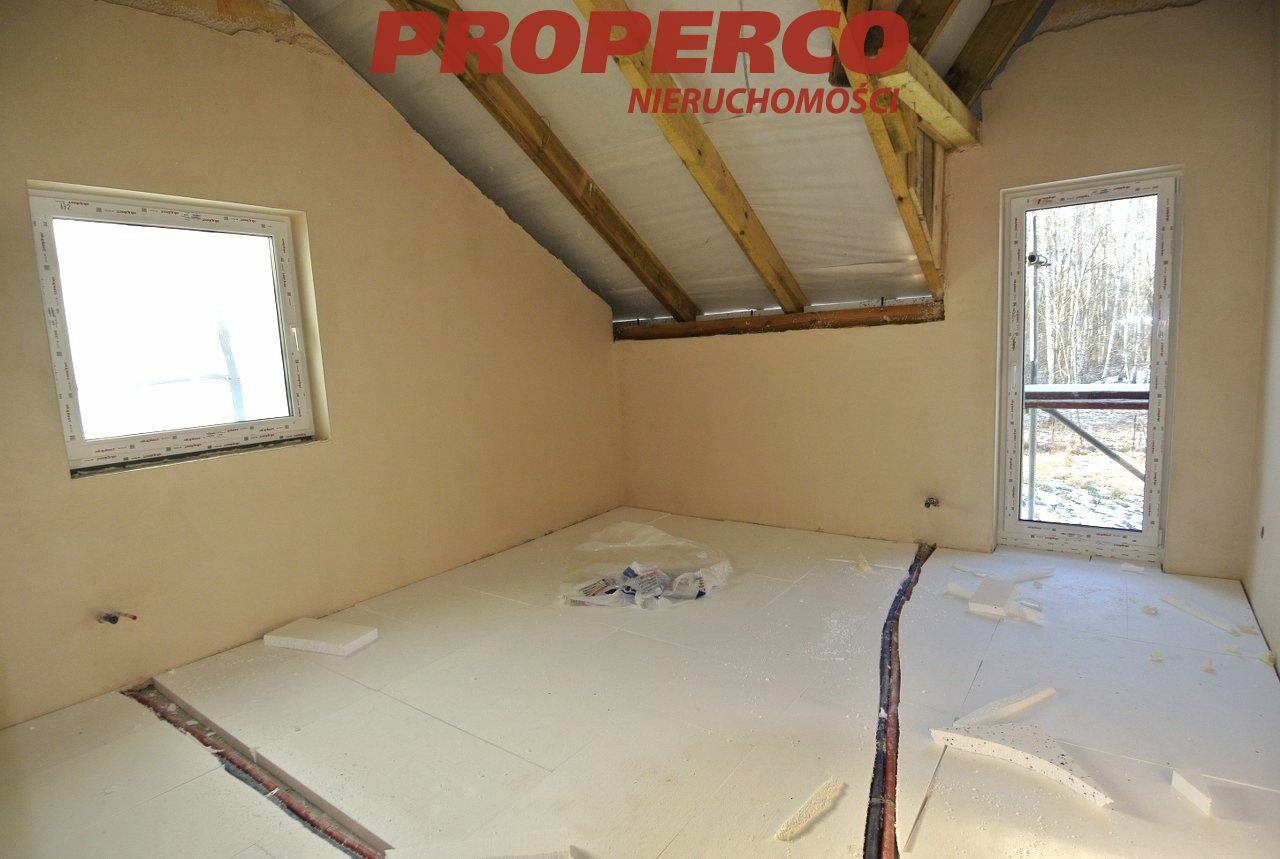 Budynek w stanie deweloperskim, do wykończenia . Okna PCV 3-szybowe. Materiał konstrukcyjny: gazobeton, dach kryty blachodachówką.